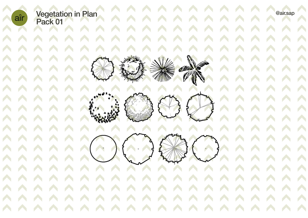 Tired of spending hours trying to find the right PNG cut-outs for your floor plans? Look no further, 'cause we've created this great pack of vegetation in plan!